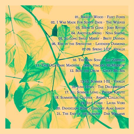 --Part of this mix (ie, most of the summer songs) has been floating around on an iPod playlist for years now, but the rest was assembled in March & April 2013.